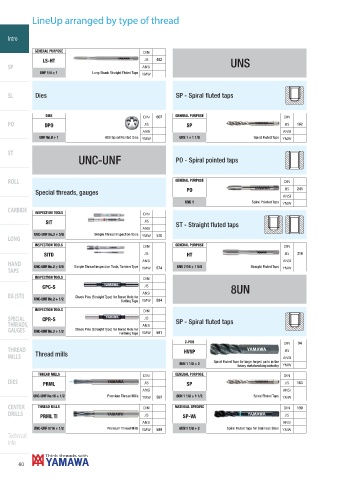 HAND UNC-UNF No.2 ÷ 5/8 Simple Thread Inspection Tools, Tandem Type UNS 7/16 ÷ 1 5/8 Straight Fluted Taps