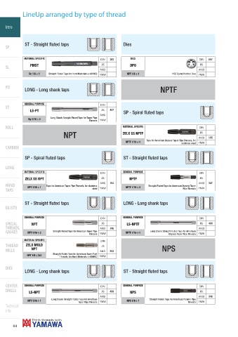 SP - Spiral fl uted taps ST - Straight fl uted taps