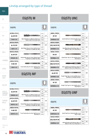 EG MF 10 ÷ 12 Thread Inserts YMW EG UNF No.10 ÷ 1/2 Thread Inserts YMW