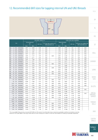 12. Recommended drill sizes for tapping internal UN and UNJ threads