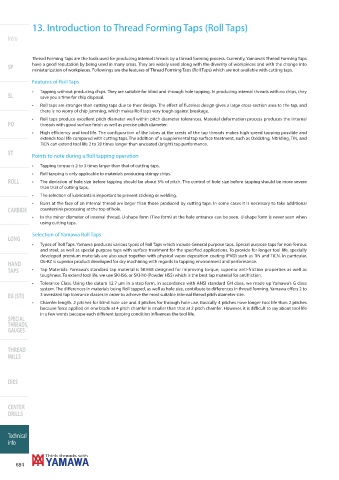 system. The diff erences in materials being Roll tapped, as well as hole size, contribute to diff erences in thread forming. Yamawa off ers 2 to