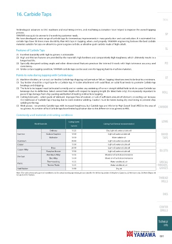 toughness. As a matter of fact Carbide taps have limited application due to this difference in toughness to HSS.