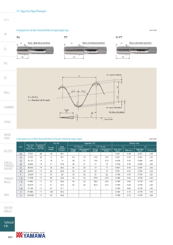TAPS Comparison of the thread limit of taper internal pipe taps Unit: mm
