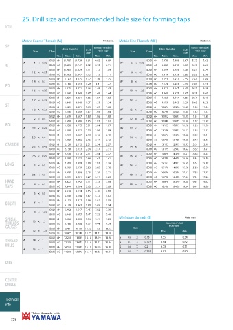 Metric Coarse Threads (M) Unit: mm Metric Fine Threads (MF) Unit: mm