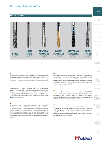 di taglio, trattamento superfi ciale per poter soddisfare al meglio le diverse Nuestra gama de productos está compuesta por 6 diferentes "TAP SERIES",